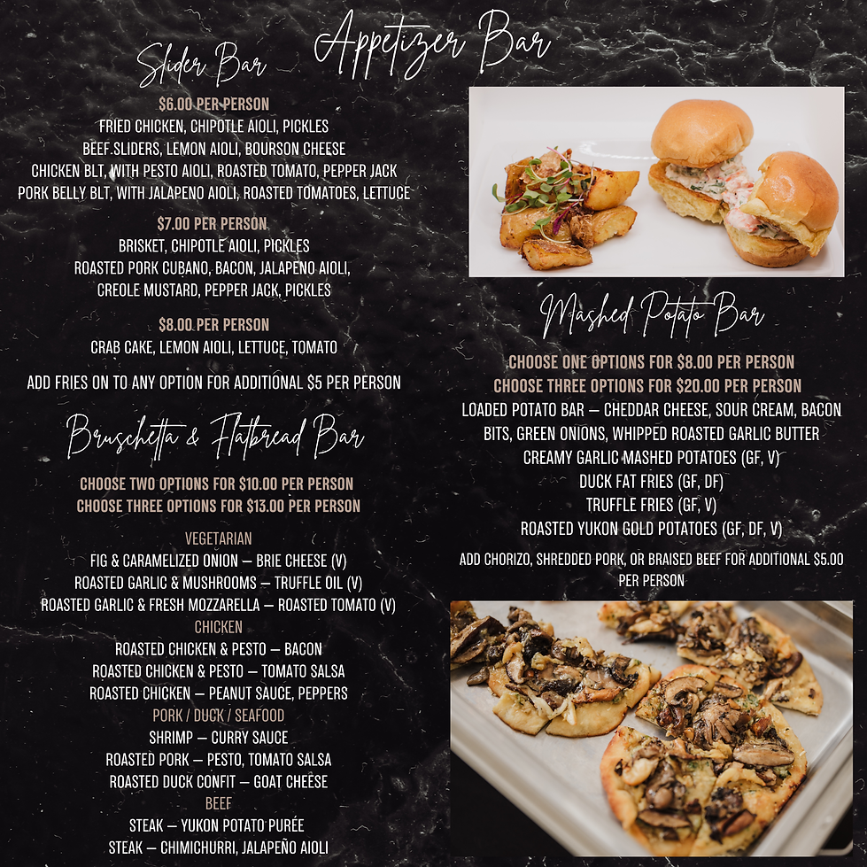 At Twist Catering, our menus are designed to feel elevated, intentional, and seamless. We offer a curated selection of chef driven menu styles that can be customized to suit your event, guest count, and service needs.